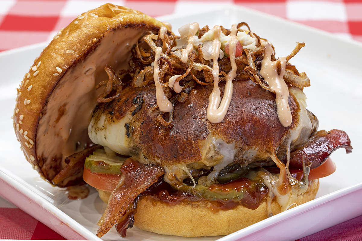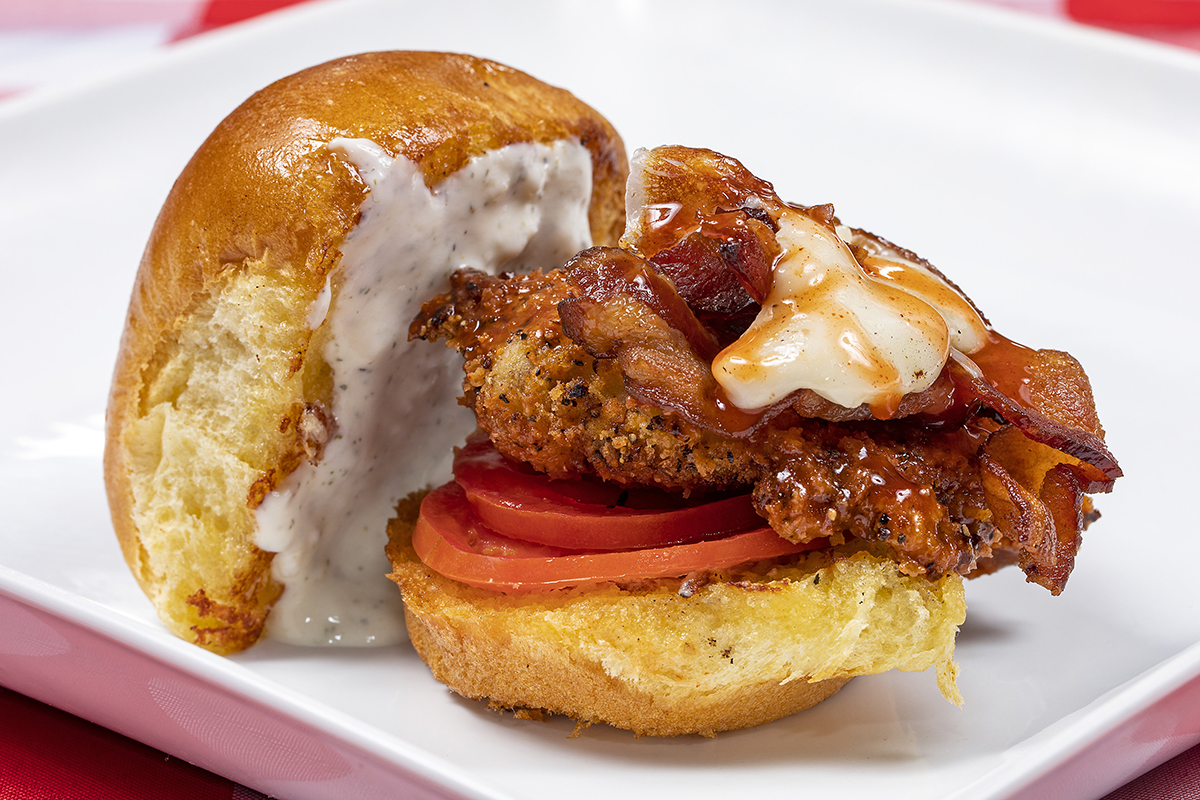 Marinated Chicken Thigh • Lemon Pepper Panko Breading • Cherrywood Bacon • Roma Tomato • Oaxaca Cheese • House Ranch • Brown Sugar Buffalo Sauce • Parmesan Crusted Brioche Bun