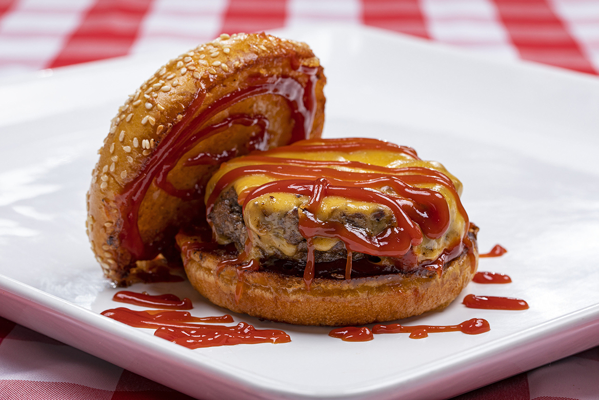American Rib Eye Wagyu Ground Beef • American Cheese • Ketchup • Parmesan Crusted Brioche Bun
