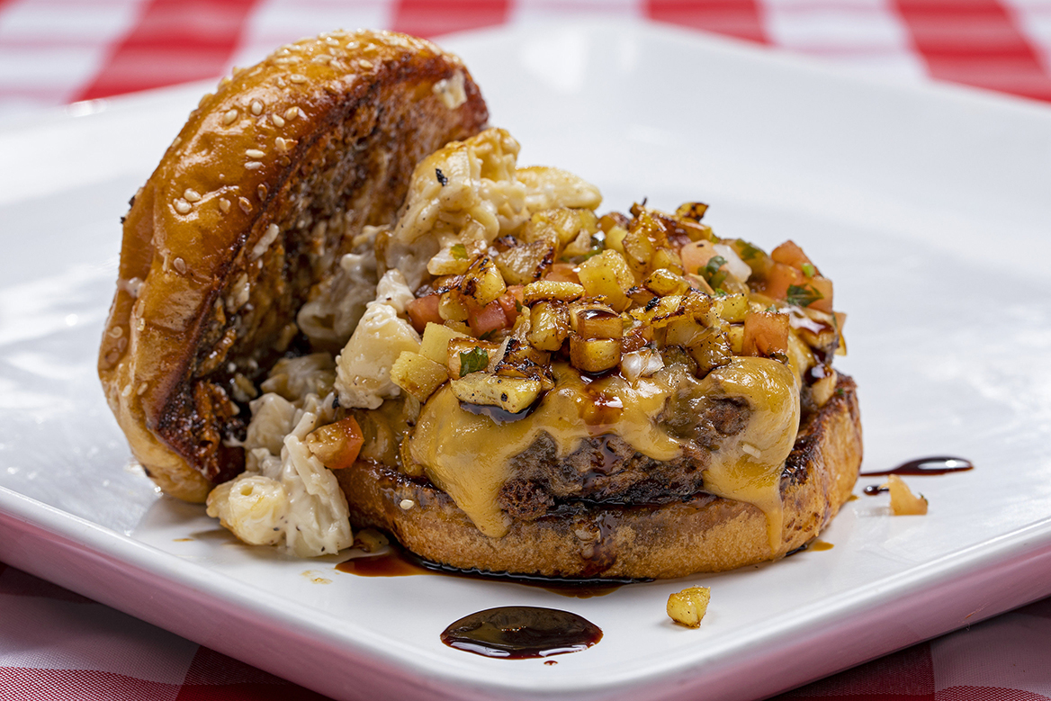 American Rib Eye Wagyu Ground Beef • Hawaiian Mac Salad • Grilled Diced Pineapple • Pico de Gallo • American Cheese • Teriyaki Sauce • Parmesan Crusted Brioche Bun (available as a slider or Chef Special Burger)