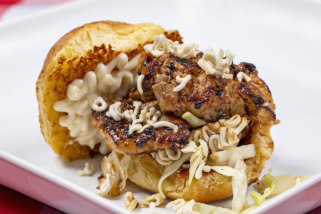 Ponzu Hawaiian Marinated Chicken Thigh • Lemon Ginger Crunchy Slaw • Mayonnaise • Parmesan Crusted Brioche Bun