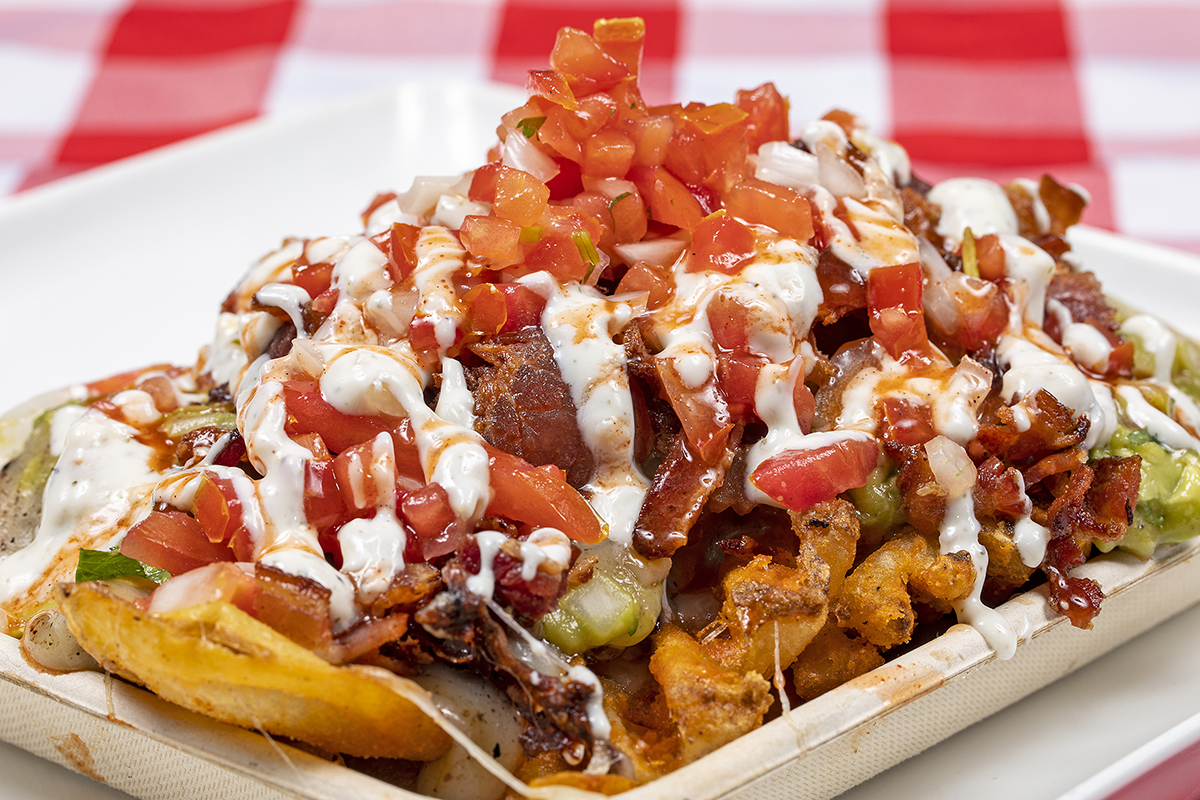 Burt’s Waffle Fries • Burt’s Secret BBQ Chips • Diced Cherrywood Bacon • Mexico City Style Guac • Oaxaca Cheese • Burt’s Secret Ranch • Burt’s Secret Brown Sugar Buffalo Sauce
