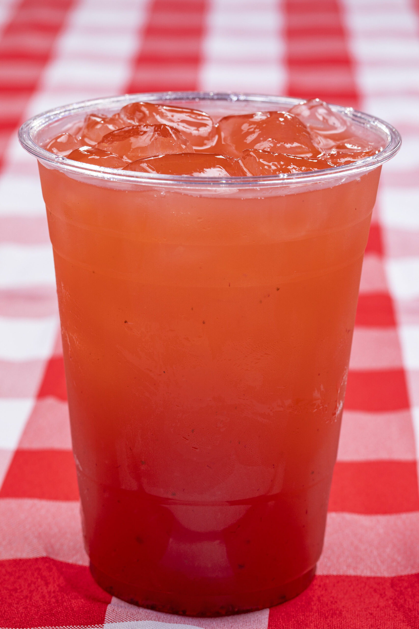 House Made Lemonade, made from three simple ingredients: fresh squeezed lemons, sugar, and water, mixed with our house made macerated strawberries.